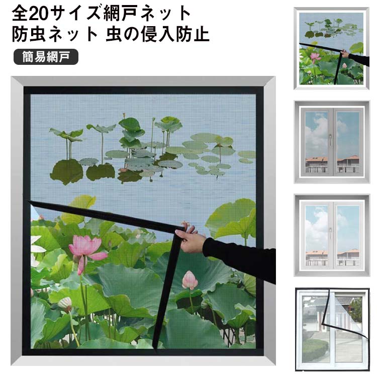 網戸カーテン 網戸 万能網戸 網戸キット 蚊帳 簡易網戸 防虫網 取り付け 虫除け 蚊を防ぐ 窓 マジックテープ式 万能 ネット 簡単