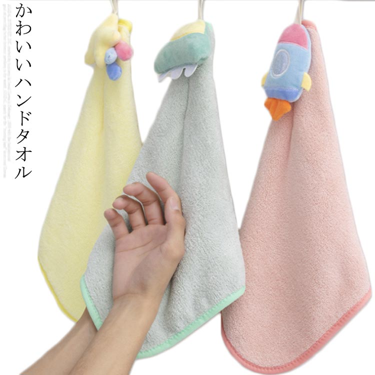 ハンドタオル ハンカチ タオル ループ付き 速乾 子供用 肌触り良い 家庭用 幼稚園 保育園 キッチン 浴室 柔らかい 吸水性
