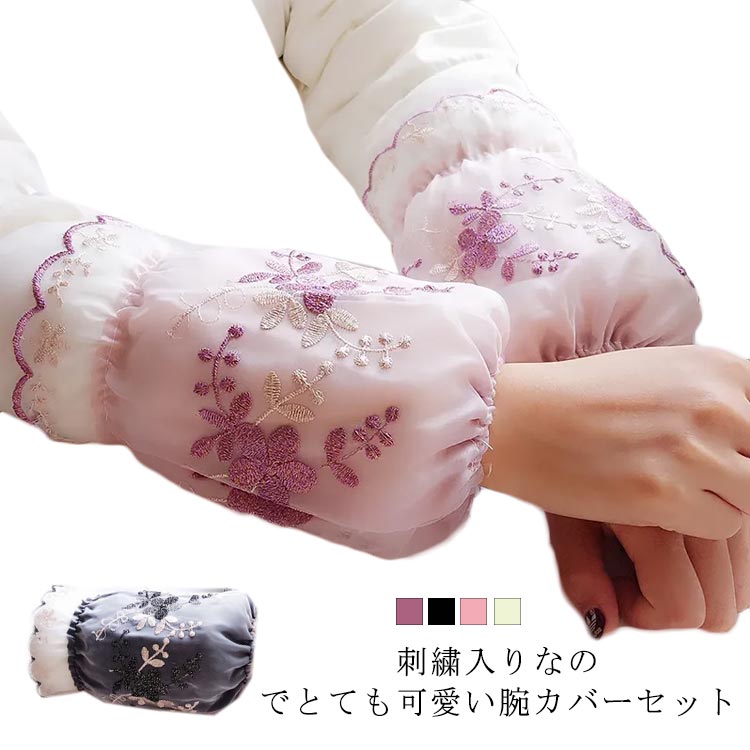腕カバー 農作業 おしゃれ 袖カバー 腕抜き 刺繡 耐摩耗 セット 華やか 花柄 かわいい きれいめ レディース 事務所 仕事 園芸 腕ぬき 作業服 キッチン アームカバー 腕カバー 家事 お掃除 ギ