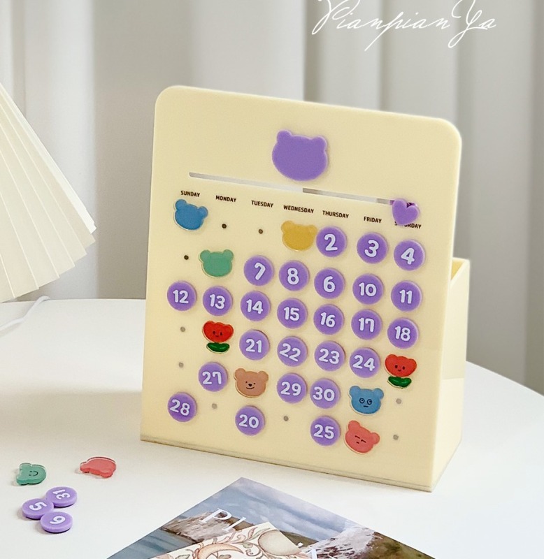 小物入れ付き万年カレンダー卓上韓国インテリア雑貨おしゃれかわいいシンプルナチュラル北欧大きい子ども部屋キッズカラフル20232024組み合わせずっと使えるキューブ丸可愛い入れ替え収納パステル可愛い磁石