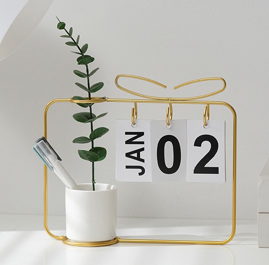 花瓶付カレンダーゴールドシンプル卓上日にち月日おしゃれ韓国雑貨インテリア北欧ホワイト白黒ブラック入れ物付き小物入れ玄関置き物永久ペン立て花瓶リボン一輪挿し小さいミニ可愛いアンティーク