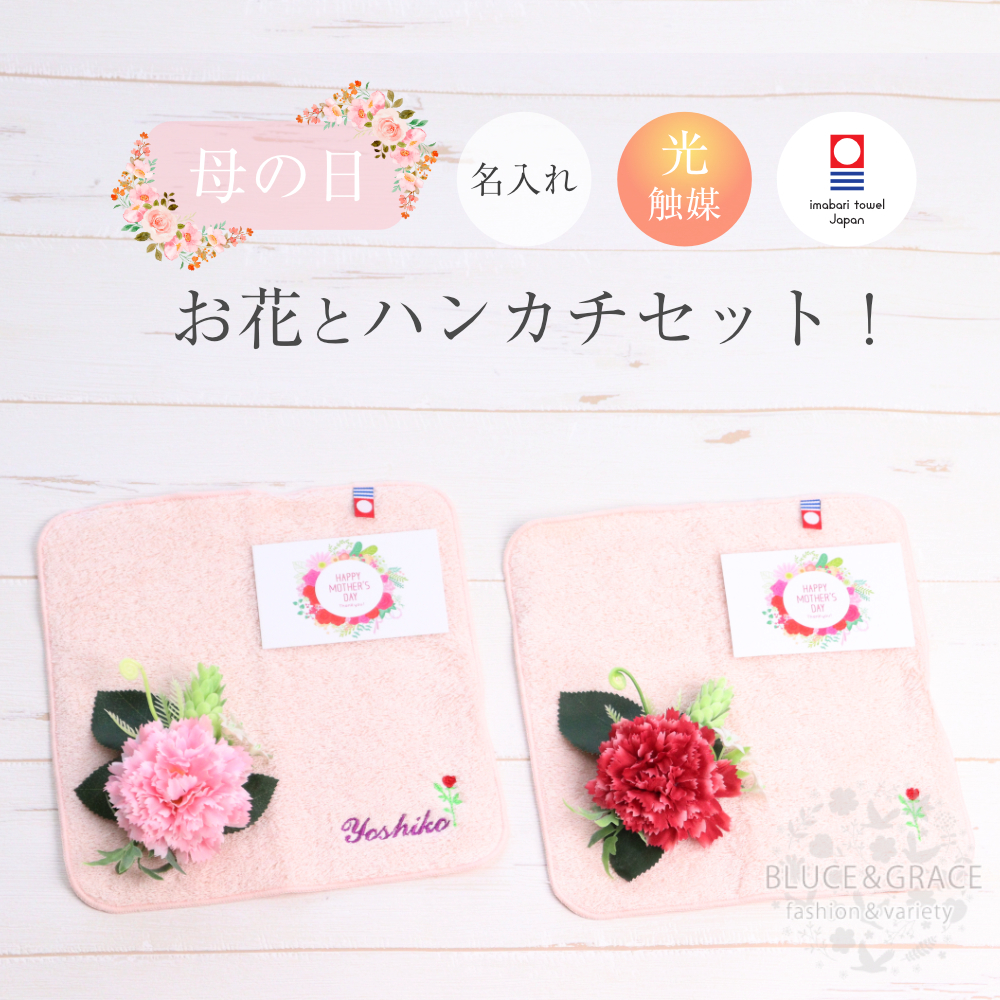 母の日 カーネーション と 今治ハンカチ のセット 名入れ ギフト プレゼント 光触媒花 ガーデン DIY 花 観葉植物 造花 人工観葉植物 造花