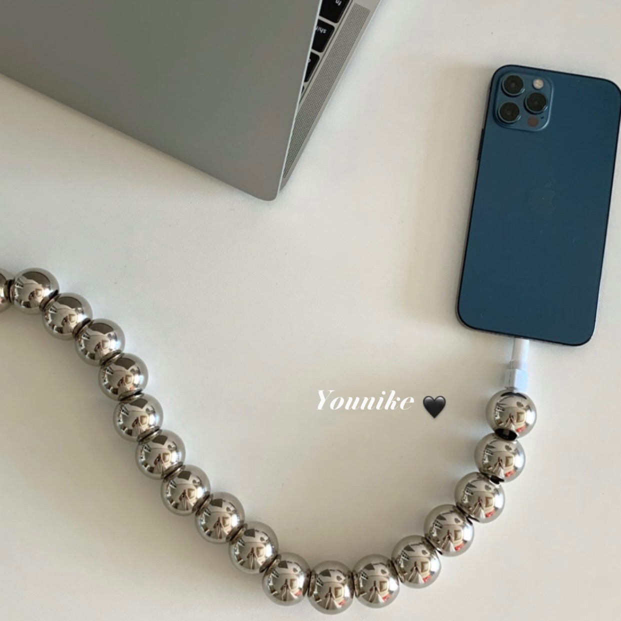 シルバーコードジュエリー充電コードカバーケーブル銀おしゃれかわいい韓国雑貨インテリア北欧丸円1m1メートル保護カバーappleiPhone断線防止パソコンiPad配線カバー隠すアクセサリー