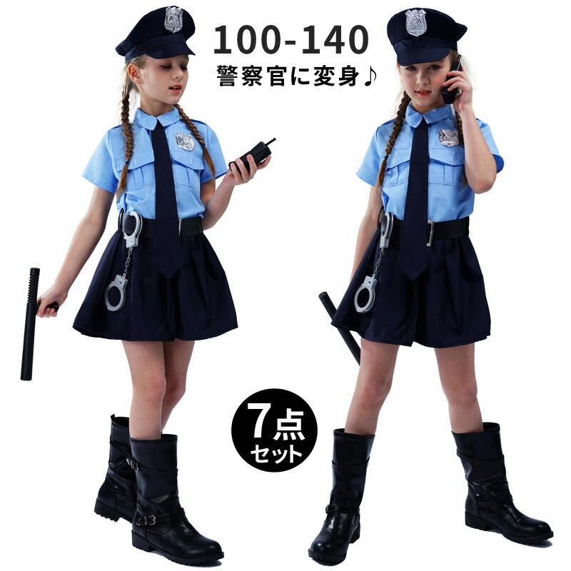 7点セット ハロウィン コスプレ 仮装 ポリス 警察 女の子 警察服 ハロウィン コスプレ衣装 警官 子供 警察官 ポリス キッズ お巡りさん ハロウィーン コスチューム 変装