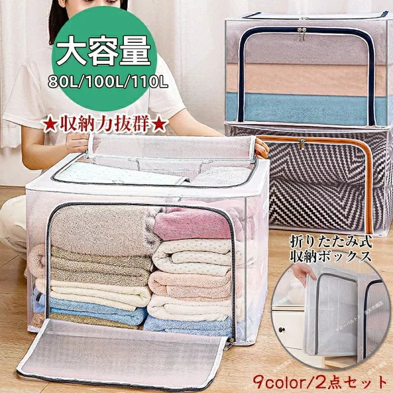 衣類収納ボックス 衣装ケース 布団収納袋 布団袋 衣類収納ケース 不織布製 透明窓 折り畳み 省スペース 大容量 80L 100L 110L 押入れ 防水性 クローゼット ベッド下 収納便利