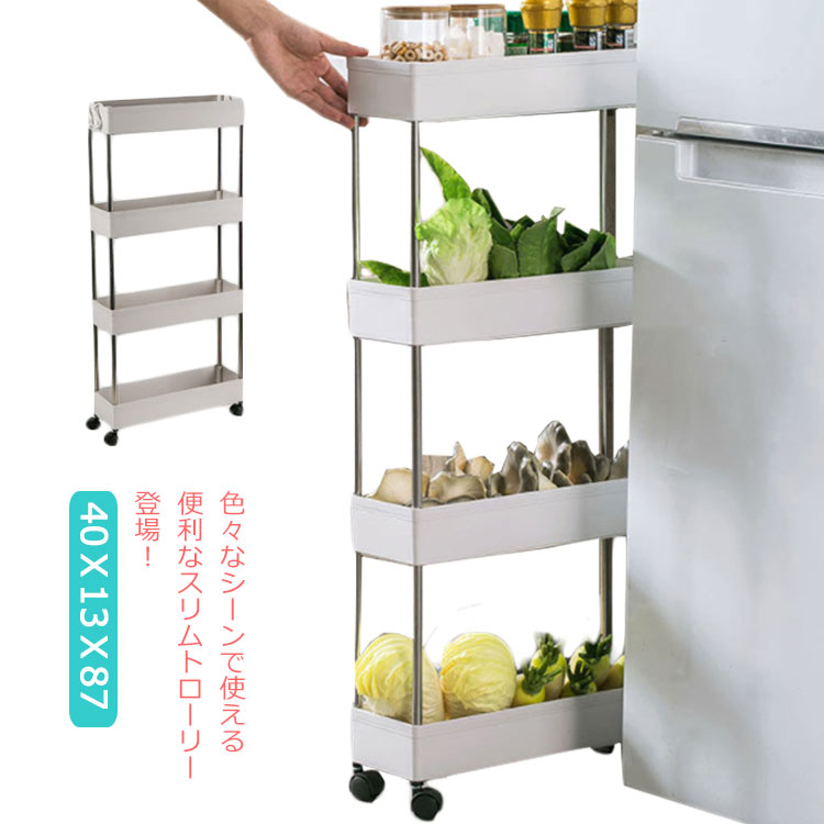 スリムトローリー ワゴン 13 幅 すき間 すきま スリム 隙間 すき間収納ワゴン 隙間ラック スリム収納 コンパクト キッチン隙間収納 洗面所 収納 キッチンワゴン