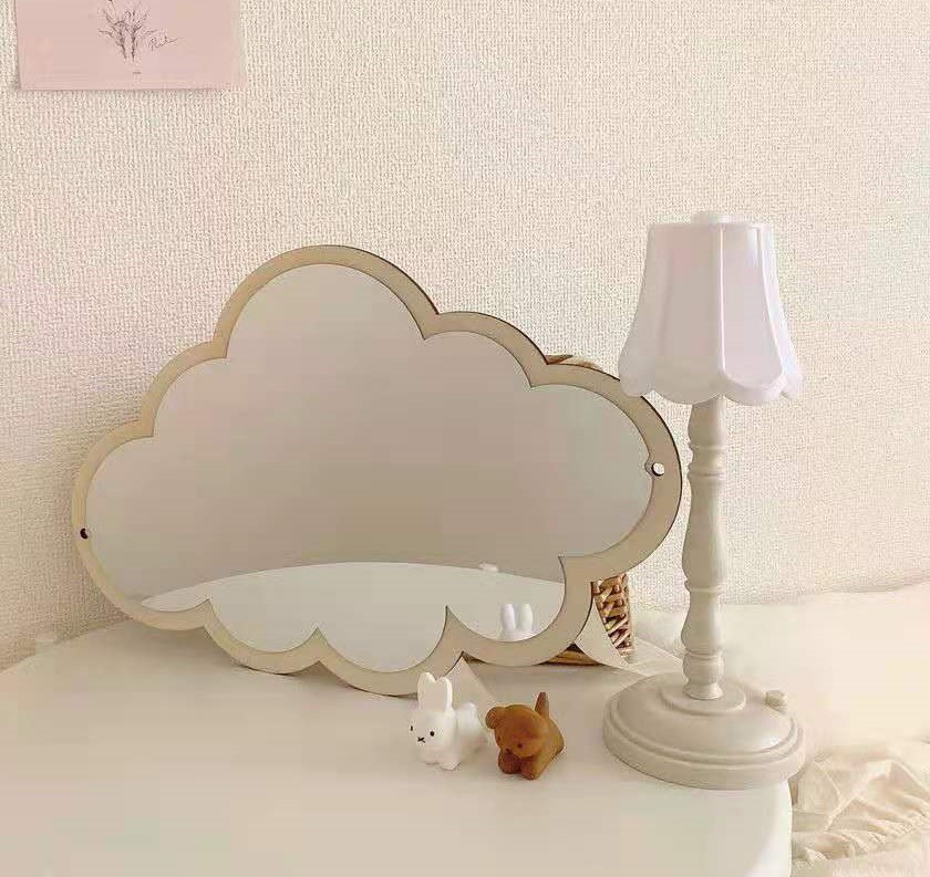 雲型スタンドミラー鏡ミラーデザイン雑貨インテリアおしゃれかわいい可愛い卓上丸上大きい割れない韓国木化粧鏡卓上鏡コンパクト子供部屋壁掛けくも可愛いアクリル
