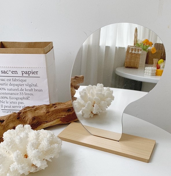 スタンドミラー鏡ミラーデザイン雑貨インテリアおしゃれかわいい可愛い卓上大きい割れない 韓国韓国雑貨北欧木化粧鏡卓上鏡コンパクト