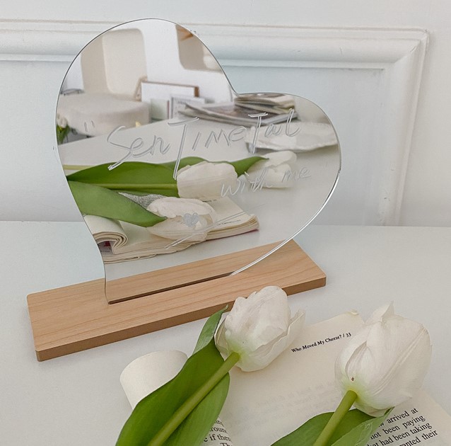 ハートスタンドミラー鏡ミラーデザイン雑貨インテリアおしゃれかわいい可愛い卓上丸上割れにくい韓国韓国雑貨木化粧鏡卓上鏡コンパクトウッドアンティーク風ハート型化粧台玄関アクセントワンポイントインテリア