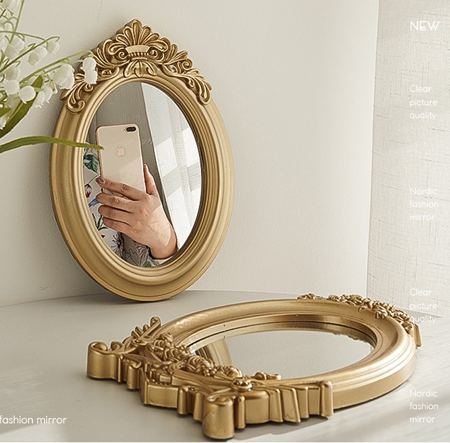 アンティークミラー2デザインスタンドミラー鏡デザイン雑貨インテリアおしゃれかわいい可愛い卓上丸上大きい割れない 韓国韓国雑貨ゴールド化粧鏡卓上鏡コンパクト円レトロヨーロッパ花柄フラワーデザイン