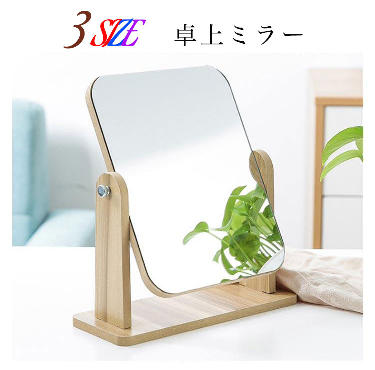 卓上ミラー 化粧ミラー メイクミラー 角度調整対応 ウッドスタンドミラー鏡 化粧鏡 化粧鏡 テーブル シンプル メイクミラー 卓上鏡 デスクミラー テーブルミラー メイク 化粧 角型