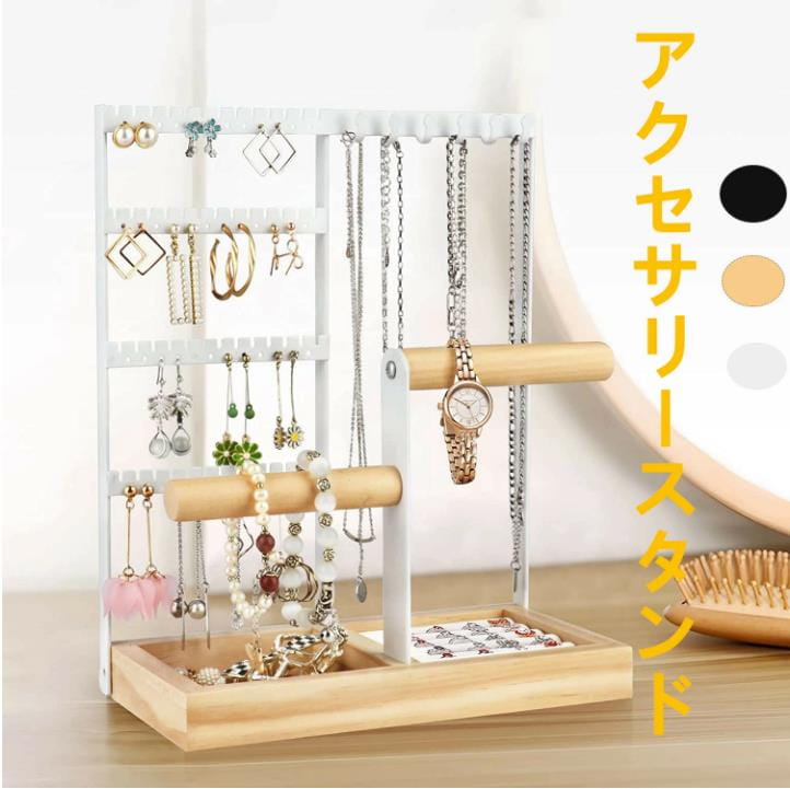 ホワイトスチールと天然木の組合せが美しいアクセサリースタンド アクセサリー収納 ピアス ネックレス 指輪 おしゃれ 時計イヤリング ジュエリースタンド ディスプレイ ショーケース