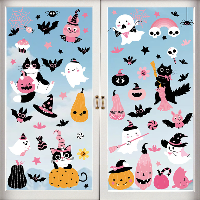 壁に傷つきず剥がせるハロウィン静電ステッカー♪怖いじゃなくてかわいい幽霊、猫ちゃんを楽しめ ガラスに貼るシール ハロウィン 窓 ウィンドウ ステッカー