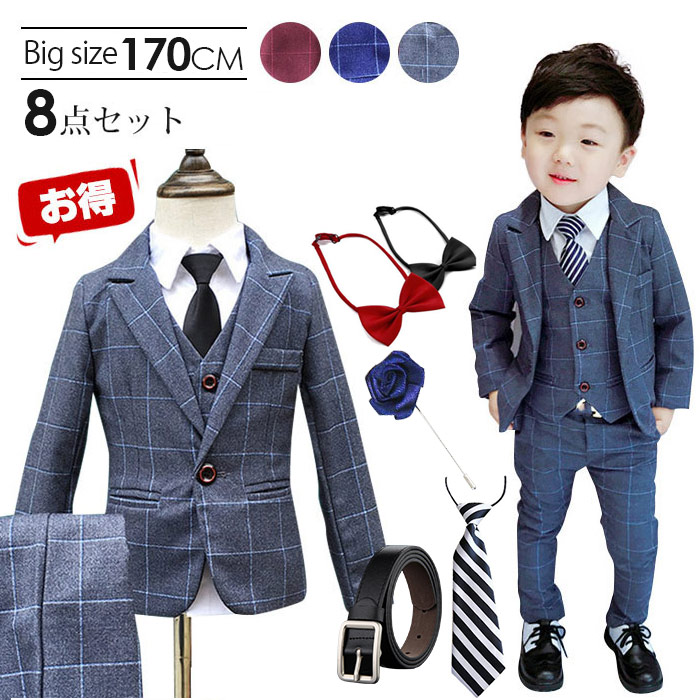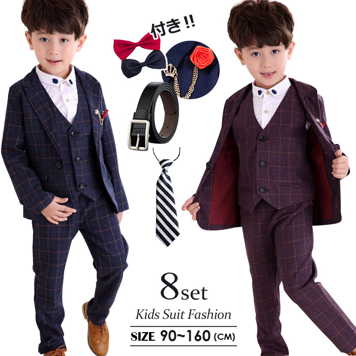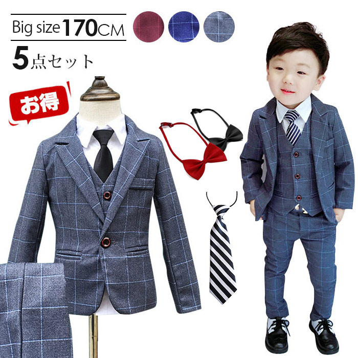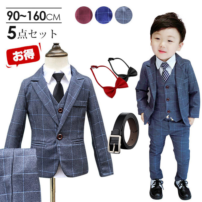 男の子 スーツ 150 男の子スーツ5点セット 卒業式 入園式 子供服 タキシード 発表会 男の子 結婚式 ジュニア 長袖ジャケット ベスト ズボン チェック柄