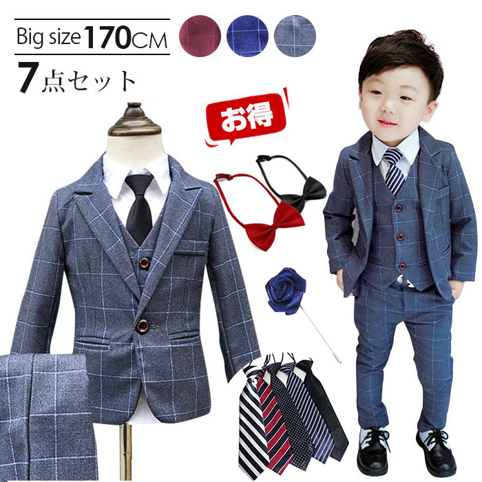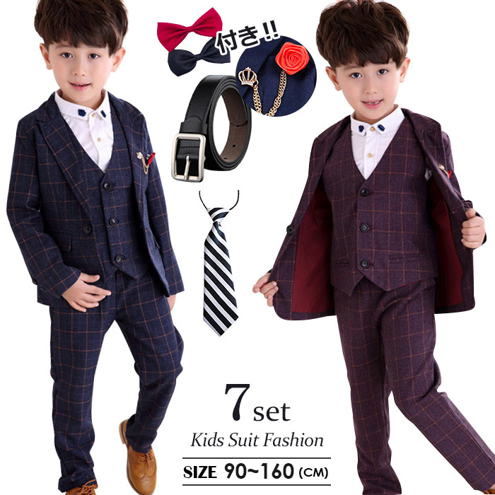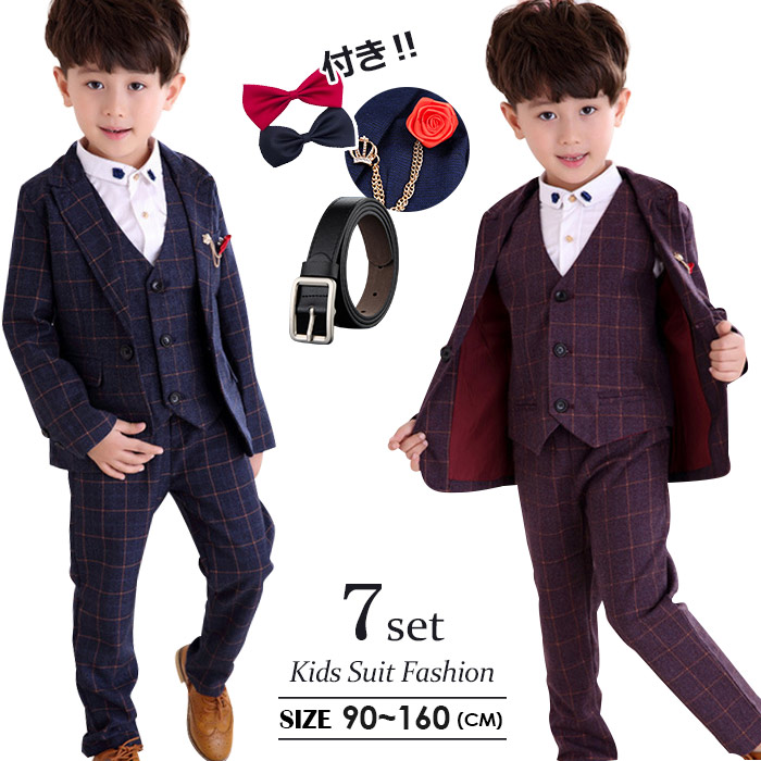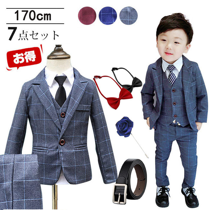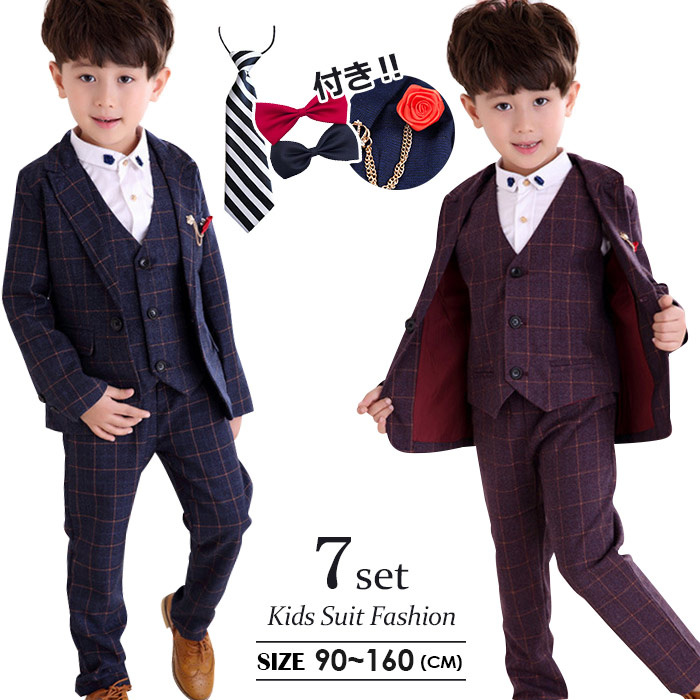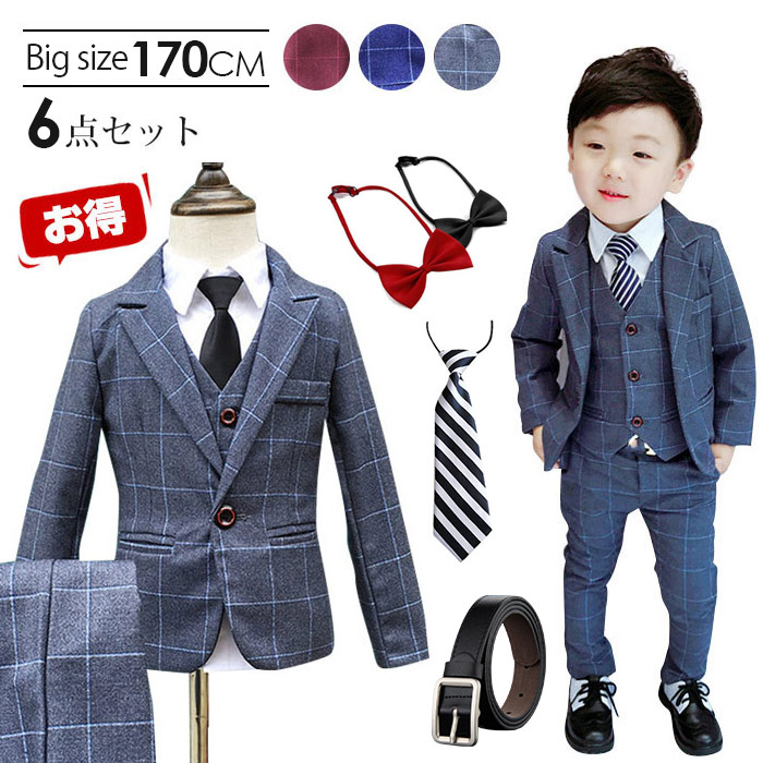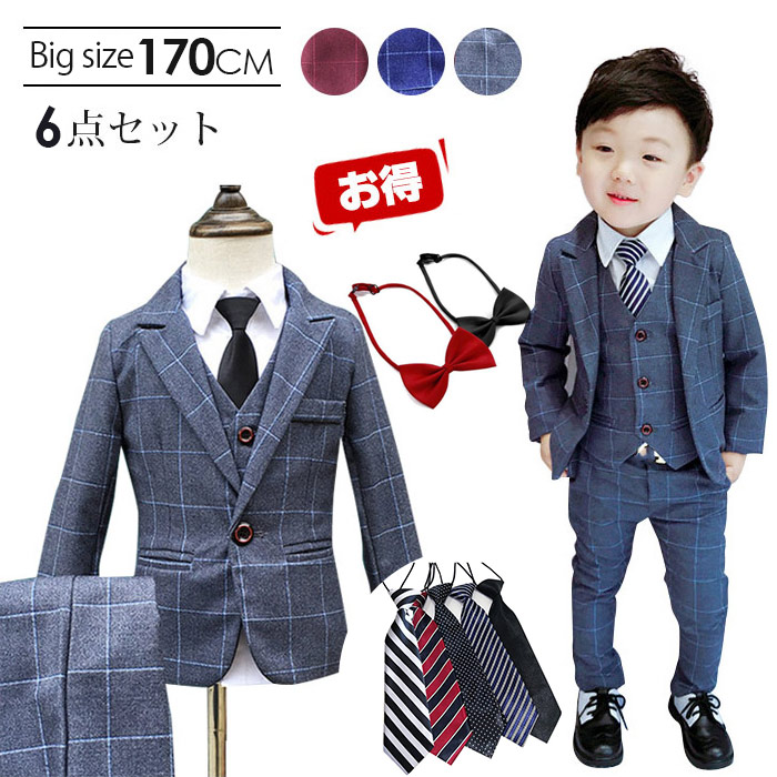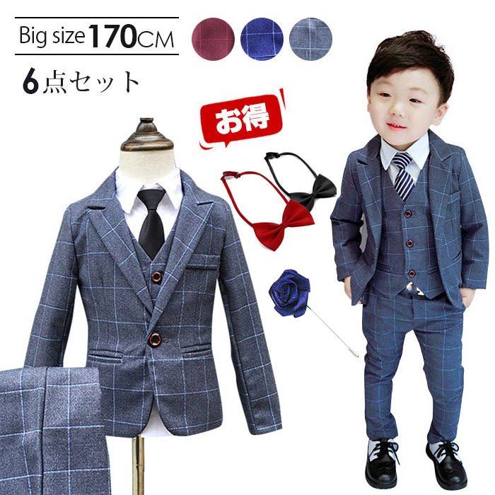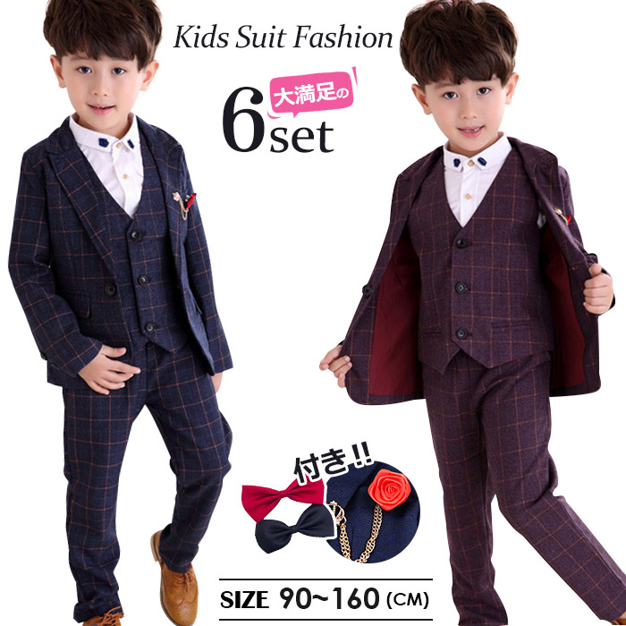 男の子 スーツ 男の子スーツ6点セット 卒業式 入園式 子供服 タキシード 発表会 男の子 結婚式 ジュニア 長袖ジャケット ベスト ズボン チェック柄