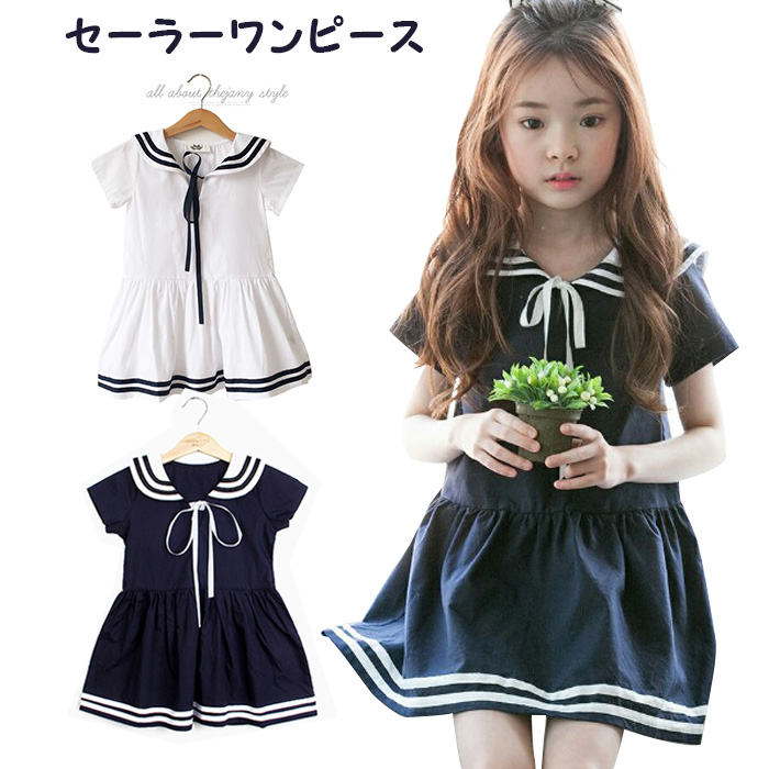 キッズ ファション セーラー ワンピース 子供 可愛さ 引出す 女の子セーラーワンピース 超人気 可愛い リボン付き ワンピース ガールセーラー 服