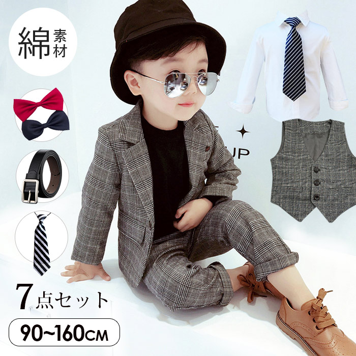 シャツあり スーツ 7点セット 卒業式 入園式 子供服 タキシード スーツ 発表会 男の子 結婚式 ジュニア 紳士服 長袖