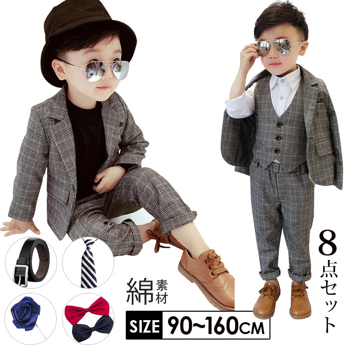 ネクタイ シャツあり スーツ 8点セット 卒業式 入園式 子供服 タキシード スーツ 発表会 男の子 結婚式 ジュニア 紳士服 長袖