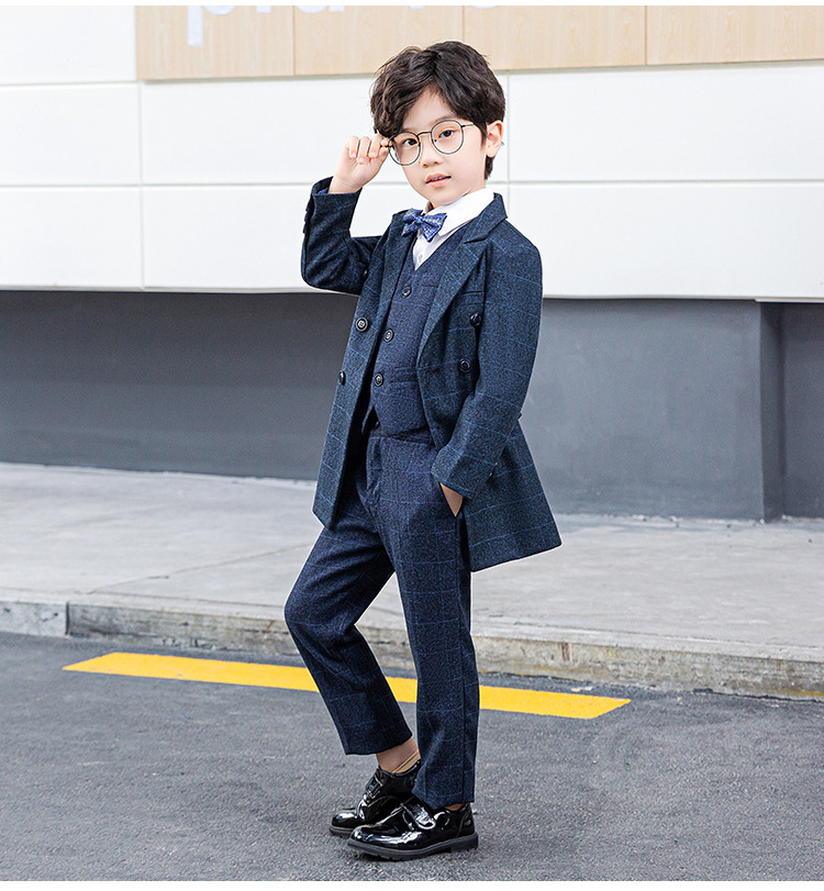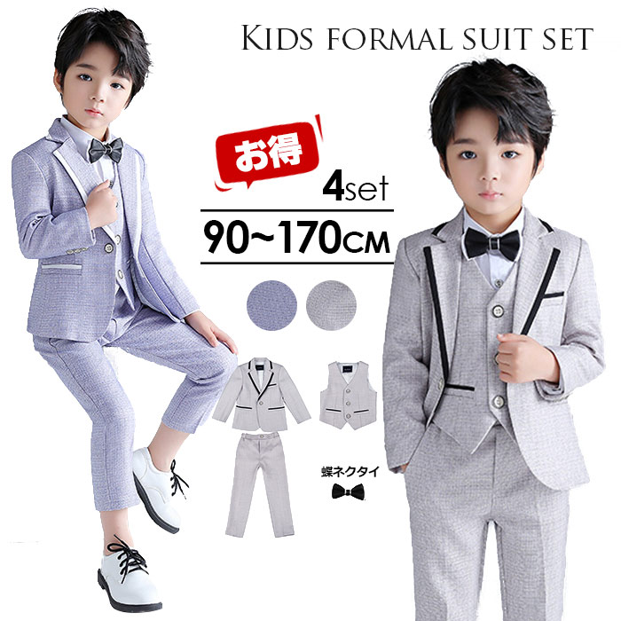 チェック柄 キッズスーツ 4点セット 英国風 着やすさ抜群 華やか 男の子 フォーマル スーツ 結婚式 披露宴 オーダーメイド