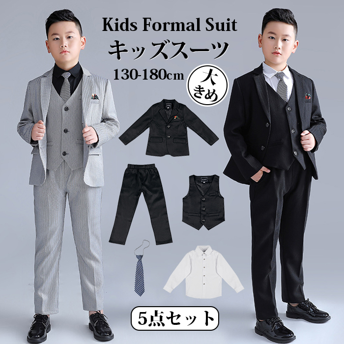 大きいサイズ 子供スーツ 6点セット 男の子 フォーマルスーツ 七五三 ワイシャツ セット 演出 発表会 入学式 紳士 スーツ 子供服 写真撮影 コンクール バースデー 法事 お葬式 卒業式 卒園式