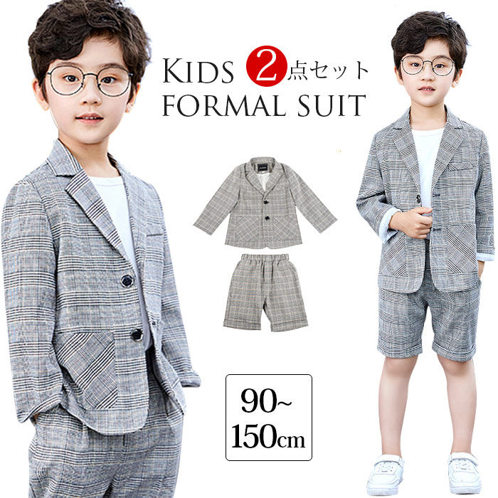 子どもスーツ 男の子 上下2点セット ジャケット+ハーフパンツ 子供用 フォーマルスーツ 長袖ジャケット 半ズボン キッズ