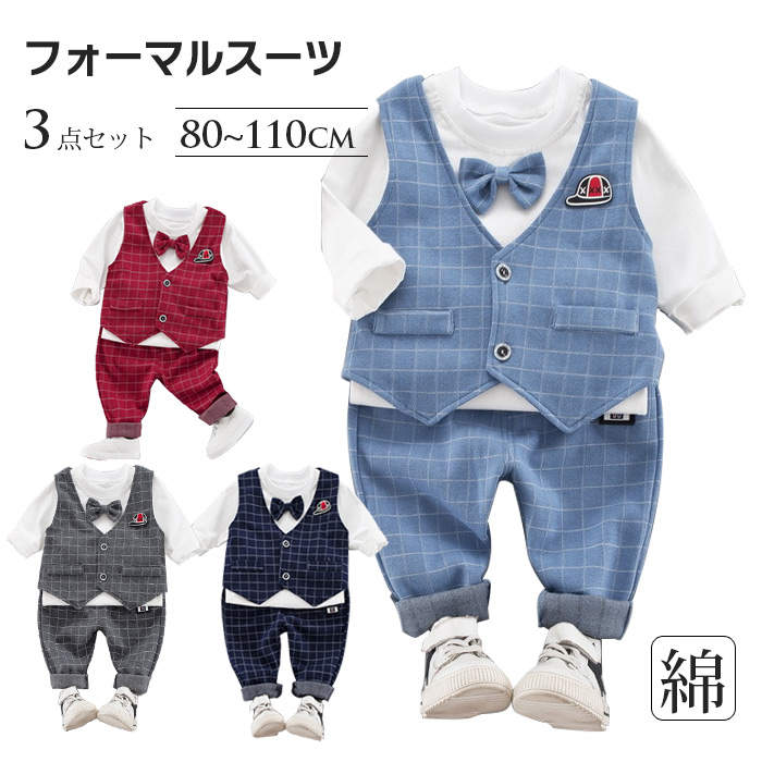 キッズスーツ 3点セット イギリス風 着やすさ抜群 華やか 男の子 フォーマル スーツ 結婚式 披露宴 オーダーメイド