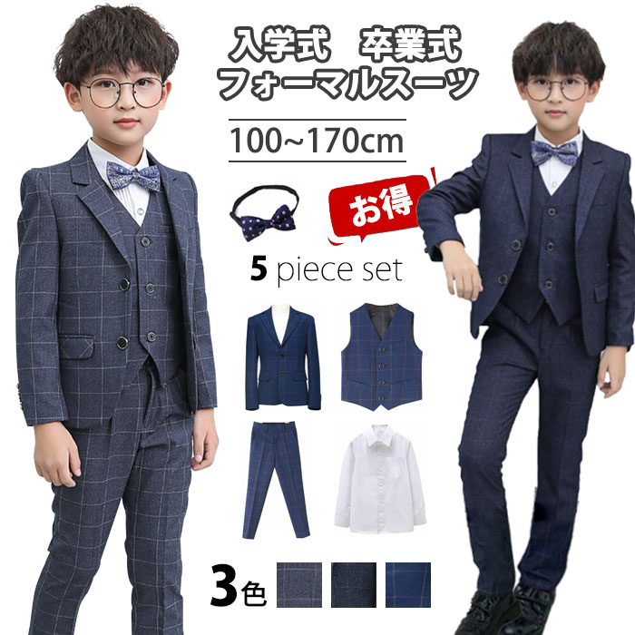 男の子スーツ 5点セット 卒業式 入園式 子供服 タキシード スーツ 発表会 男の子 結婚式 ジュニア 紳士服 長袖