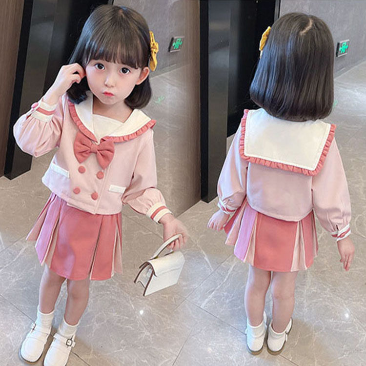 二点セット キッズ シャツ+スカート 海軍の襟 ピンク プリーツスカート 子供服 女の子 ファッション きれいめ 結婚式 カジュアル おしゃれ 女児 可愛い お出かけ 80-130 -1063