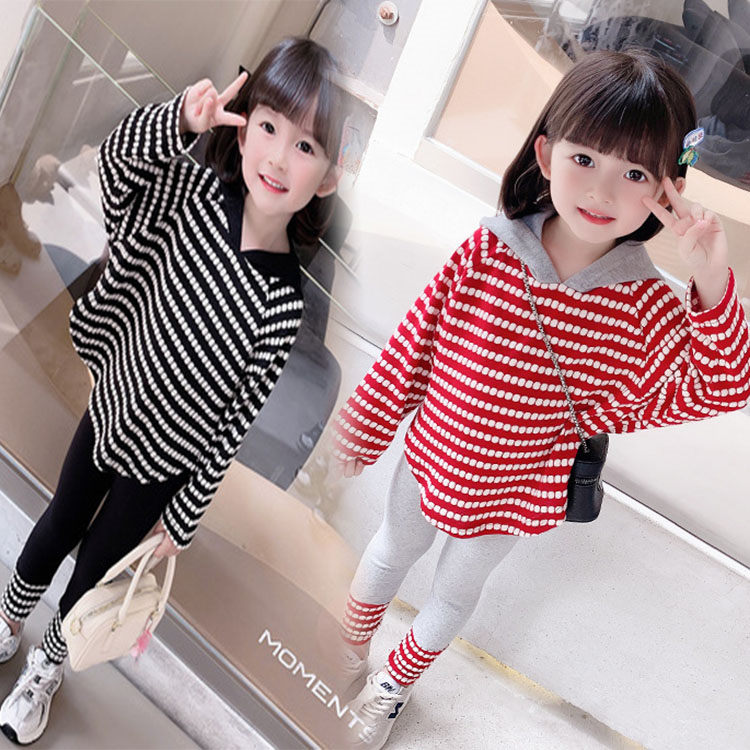 二点セット キッズ スウェット+レギンス フード付き ボーダー レッド ブラック 子供服 女の子 ファッション きれいめ 結婚式 カジュアル おしゃれ 女児 可愛い お出かけ 80-130 TZ-10