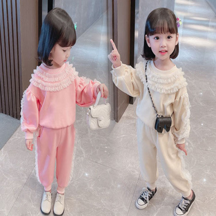 二点セット キッズ スウェット+長ズボン レース ピンク オフホワイト パフスリーブ 子供服 女の子 ファッション きれいめ 結婚式 カジュアル おしゃれ 女児 可愛い お出かけ 90-130 TZ-