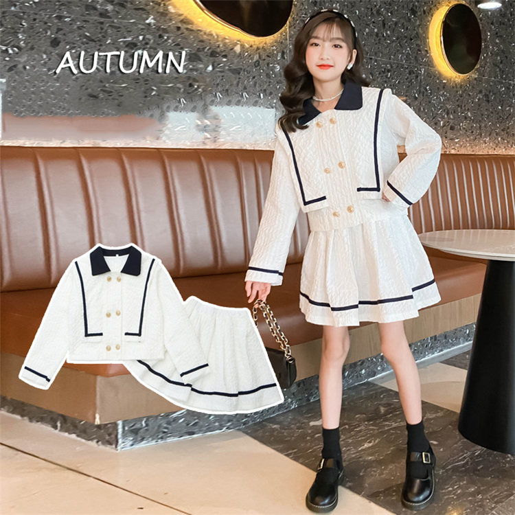 セットアップ 二点セット 長袖+スカート ホワイト 襟付き 春秋 きれいめ 子供服 おしゃれ キッズ カジュアル 結婚式 女の子 洋装 お出かけ 110-170 可愛い パーティー TZ-1121