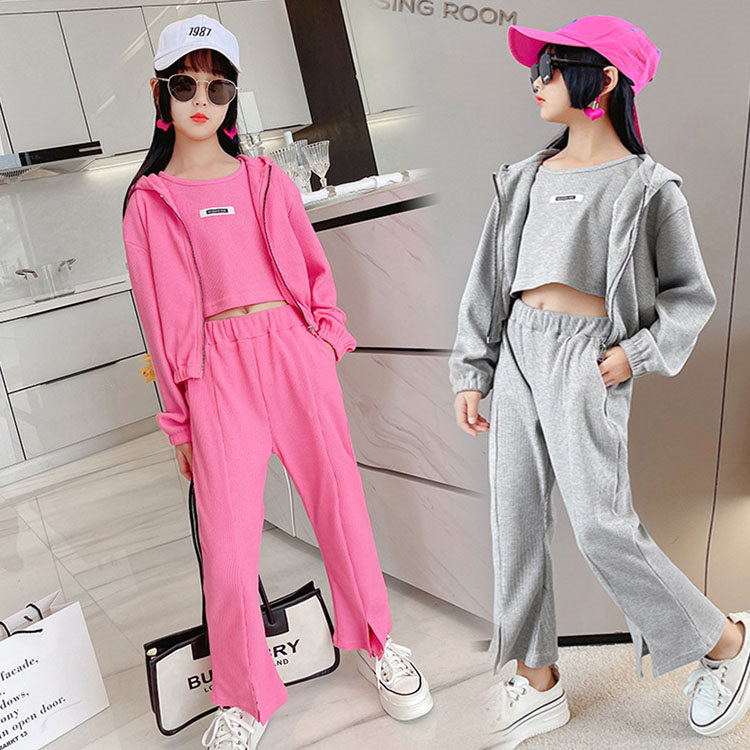 セットアップ 三点セット コート+インナー+ 長ズボン フード付き 春秋 長袖 女児 きれいめ 子供服 おしゃれ キッズ カジュアル 結婚式 おしゃれ 子供用 女の子 お出かけ 110-160 マゼン