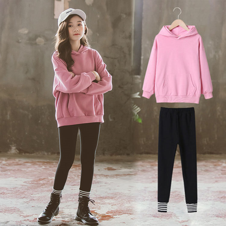 二点セット 上下セット 長袖 フード付き スウェット+レギンス 長ズボン おしゃれ 子供用 女の子 春 秋 おしゃれ お出かけ 通園 可愛い ピンク 女児 キッズ 通学 卒業式 小学生 110-160