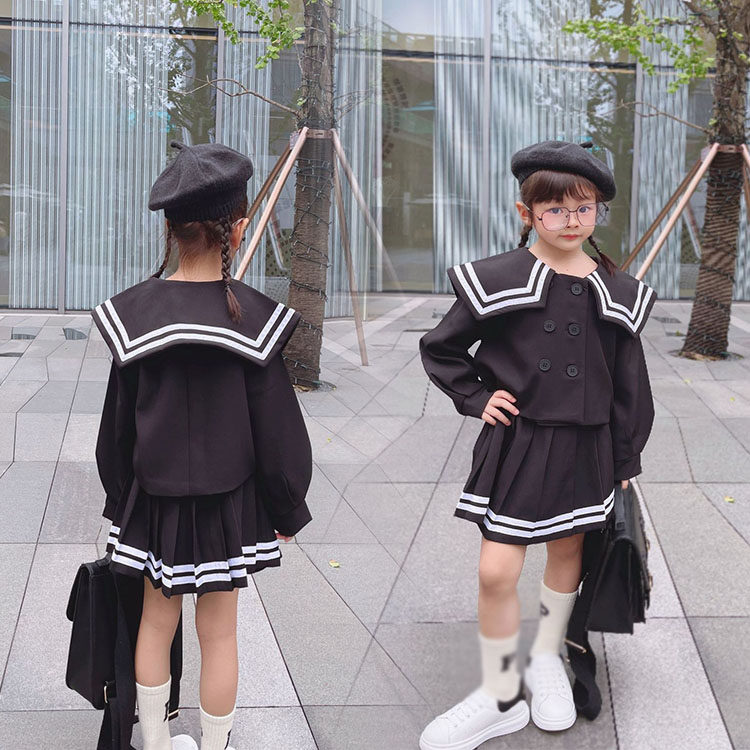 二点セット キッズ 長袖+スカート 学院風 海軍の襟 子供服 女の子 ファッション きれいめ 結婚式 カジュアル おしゃれ 女児 可愛い お出かけ パーティー 学生 プリーツスカート 110-150