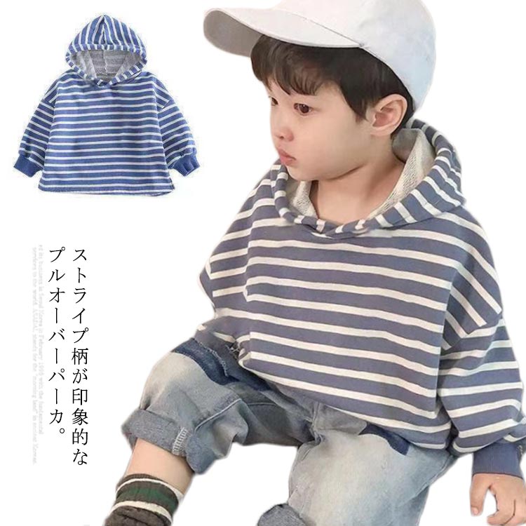 長袖 パーカー キッズ プルオーバーパーカ 子供服 男の子 コットン オーバーサイズパーカー トップス ドロップショルダー 女の子 ストライプ