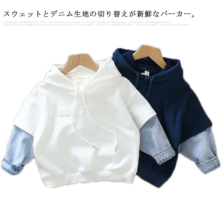 パーカー プルオーバーパーカ 男の子 子供服 キッズ服 長袖 フード付きパーカー ドロップショルダー ゆったり かわいい 切替 スウェット デニム オーバーサイズ