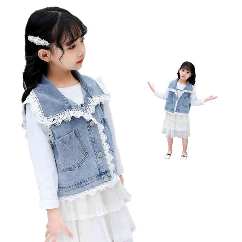 ショートベスト デニム ベスト フリルベスト 折襟ベスト 無地 おしゃれベスト フリルベストキッズ ベビー マタニティ キッズファッション トップス ベスト ジレ