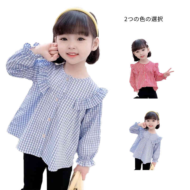 チェック柄ブラウス プルオーバー フリル おしゃれブラウス 女の子 長袖 トップス 春秋キッズ ベビー マタニティ キッズファッション トップス シャツ ブラウス