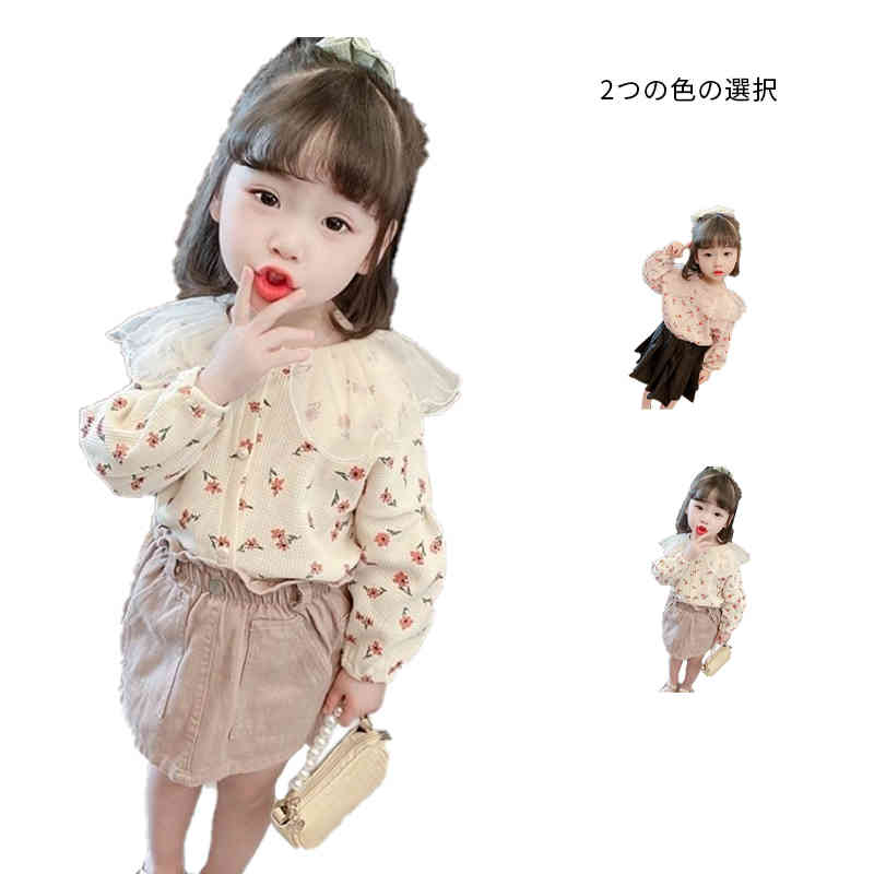 おしゃれブラウス 長袖 花柄 フォーマルブラウス 丸襟 丸襟 春秋 トップス チュール襟キッズ ベビー マタニティ キッズファッション トップス シャツ ブラウス