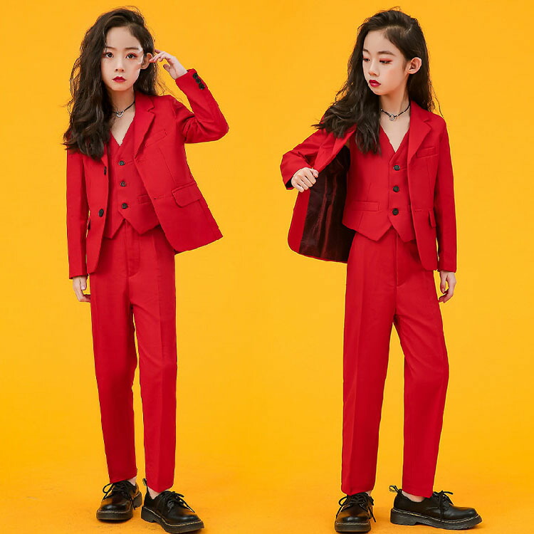 卒業式 スーツ 女の子 韓国 制服 子供 卒業式 スーツ 160 赤スーツ ピアノ発表会 パンツスーツ 長袖 フォーマルスーツ 男女兼用 ピアノ発表会 記念写真 スーツセット 子供 撮影用