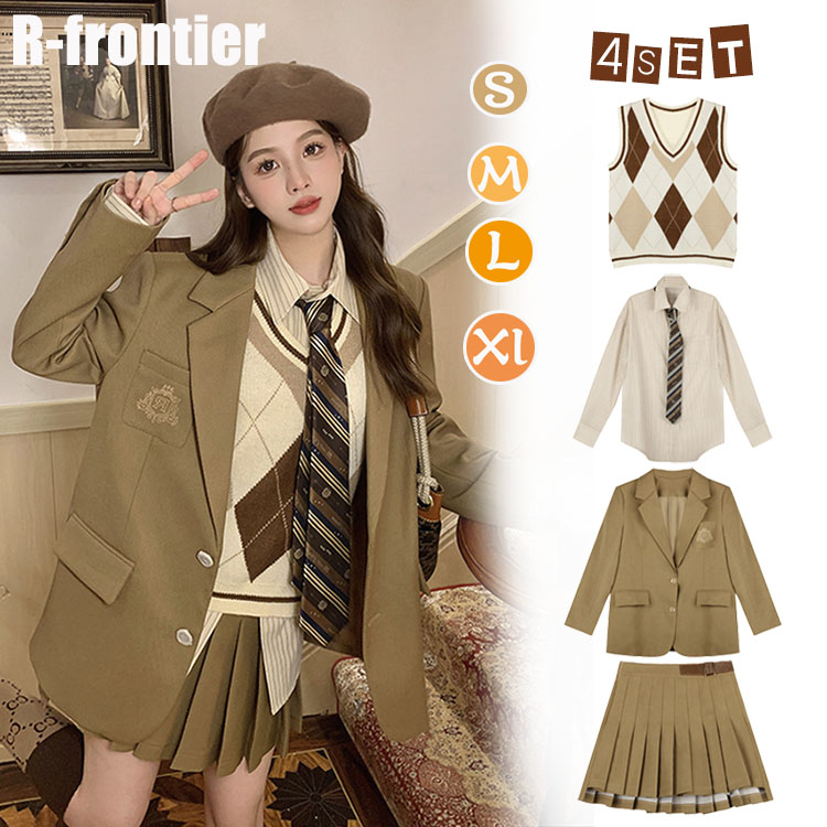 卒業式 セット ブレザー プリーツスカート ニットベスト オシャレ 韓国 高校生 中学生 スーツ 体型カバー 女の子 春物 長袖 秋 フォーマル S M L XL 発表会