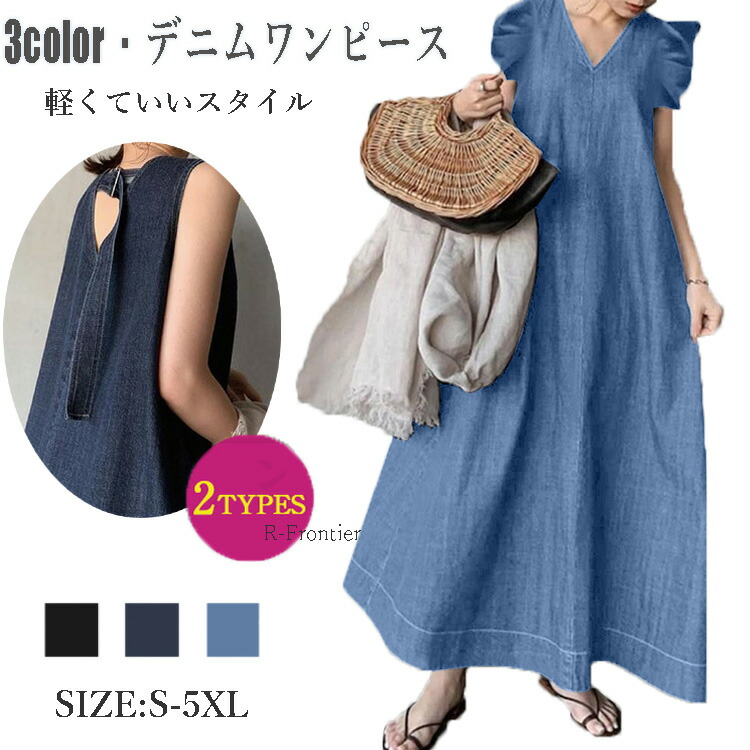 デニムワンピース Vネック レディース ロングワンピース ロング丈 デニムワンピース 韓国ファッション きれいめ デニムワンピース レディース ロングワンピース