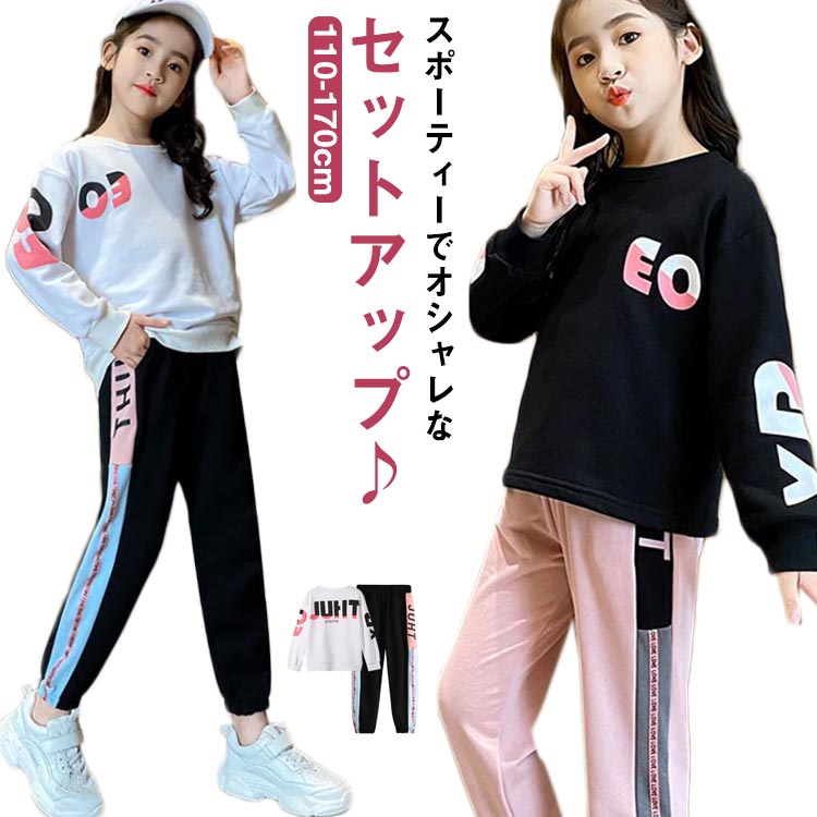 女の子 春 セットアップ カジュアルパンツセット ガールズ 子供服 上下セット 長袖 長ズボン スポーツ 運動 トレーナー カジュアル 秋 ジュニア