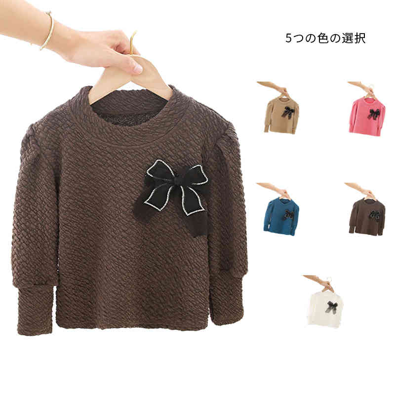 シンプル リボンブラウス 長袖 丸襟ブラウス インナーウエア ブラウス おしゃれブラウス 無地キッズ ベビー マタニティ キッズファッション トップス シャツ ブラウス