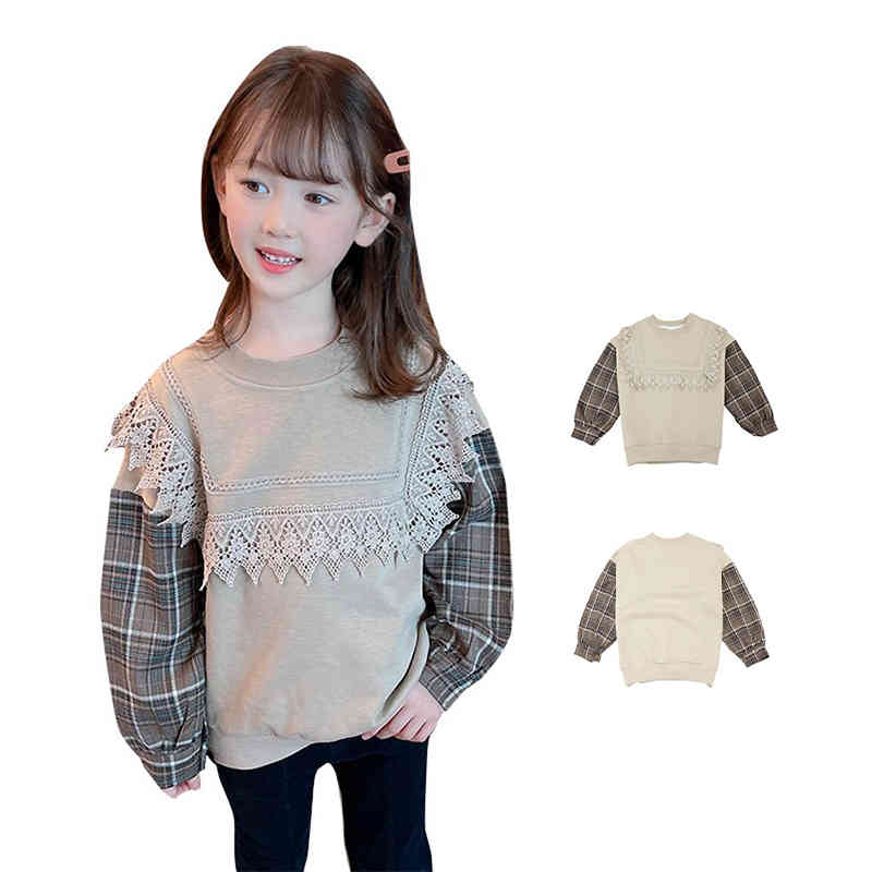 折襟ブラウス 女の子 プルオーバー 折襟ブラウス レース付き トレーナー 春秋 トップスキッズ ベビー マタニティ キッズファッション トップス シャツ ブラウス