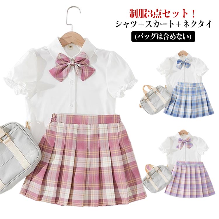 学生服 キッズ 女の子 上下セット 半袖シャツ ミニスカート リボンタイ付きキッズ ベビー マタニティ キッズファッション スカート