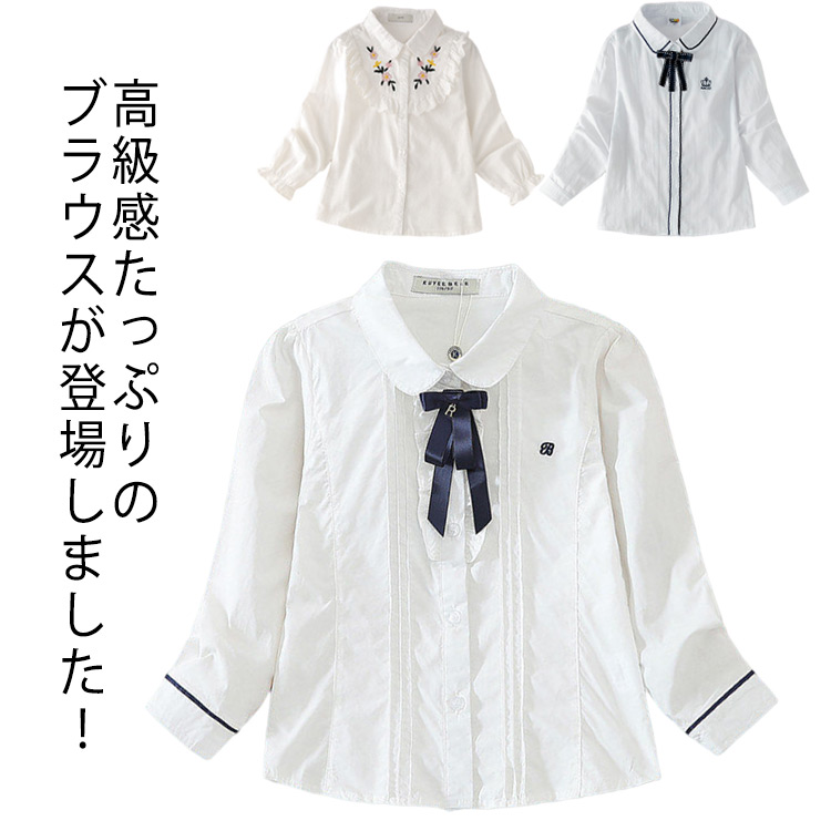 ブラウス 白 長袖 丸襟 前開 スクールブラウス スクール シャツ 女の子 子供 子ども ジュニア 女児