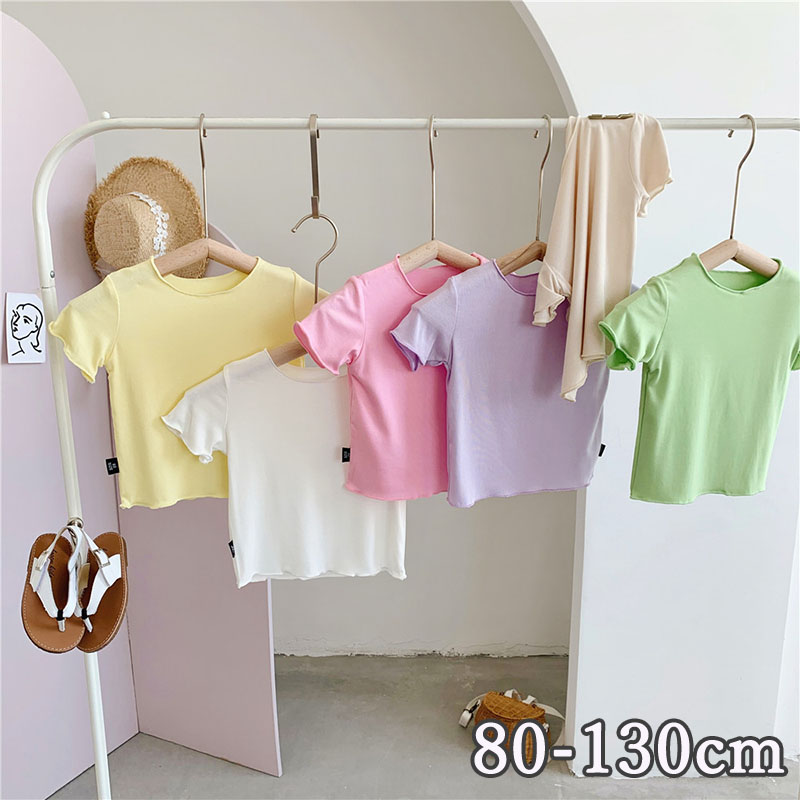 子供服 半袖シャツ ベビー服 女の子 半袖 シャツ 袖フリル ストレッチ 半そで 無地 ベビー キッズ 可愛い シンプル トップス 綿100% 夏 夏服 80 90 100 110 120