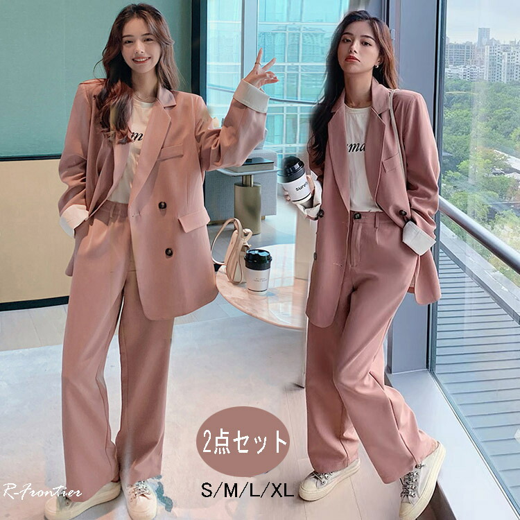 韓国 制服 セットアップ レディース 春秋 スーツ フォーマル 2点セット 結婚式 二次会 上品 上質 韓国風 女性 ブレザー + ワイドパンツ 上下セット カジュアル おしゃれ