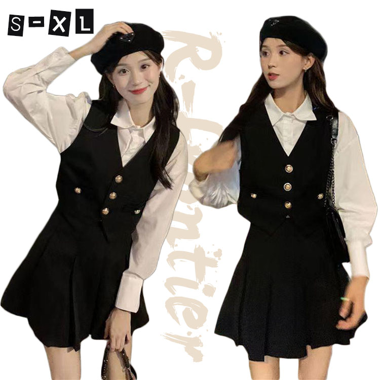 卒業式 セットアップ 卒服 韓国 中学生 高校生 白シャツ ベスト プリーツスカート 韓国 高校生 中学生 スーツ 体型カバー 女の子 春物 長袖 秋 フォーマル S M L XL